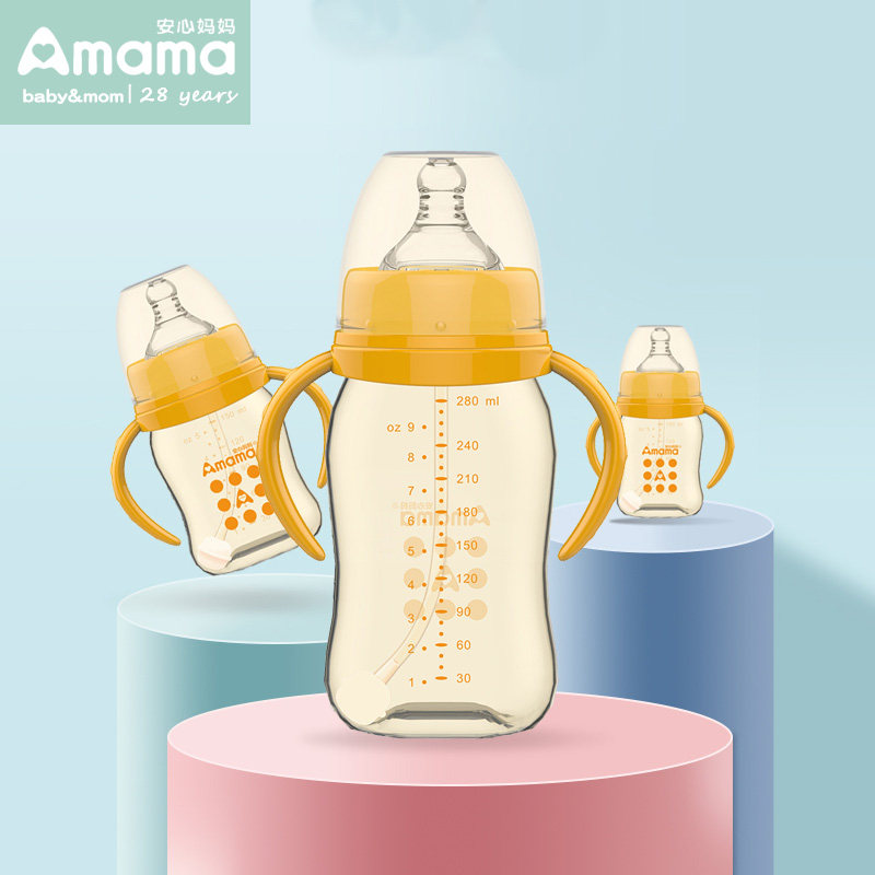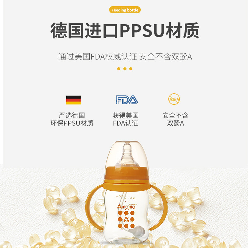 New peace of mind Mom baby PPSU bottle with wide mouth anti-flatulled gas anti-fall with straw handle baby bottle