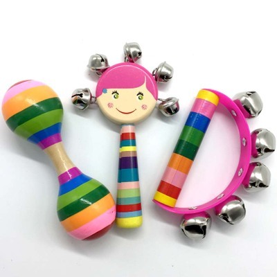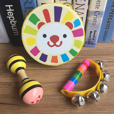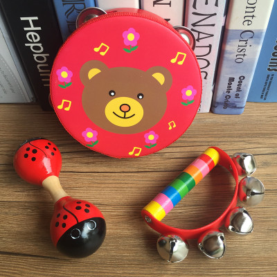 Rainbow double-headed sand boy hand ringing rainbow twin sand ball girl hand ringing 15cm blue-bubble blue-twin sandrum 15cm red bear bell drum small ladbug double-headed sandball 15c