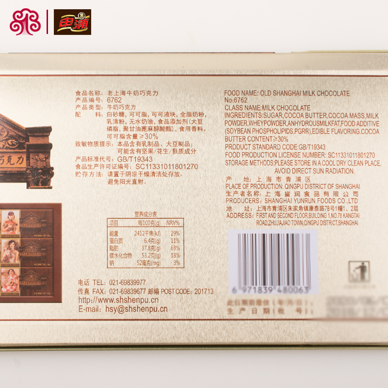 Shenpu Shanghai Terfic Milk Chocolate Gift Box Loaded Candy Snacks 108g Creative Festival Gifts Birthday Gifts