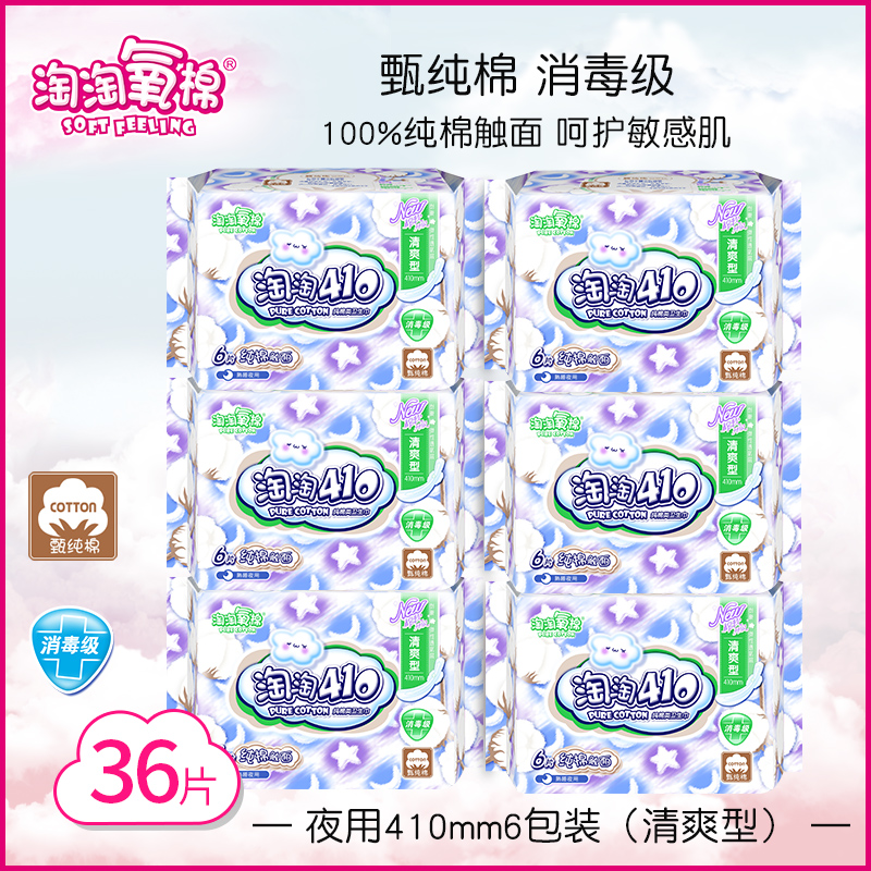 Taobao oxygen cotton tampon female full box girl student aunt towel cotton disinfection grade refreshing type night use 410mm