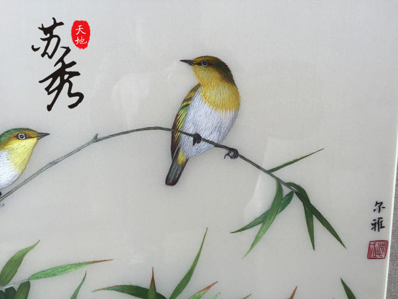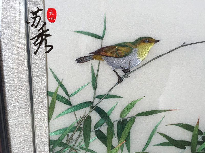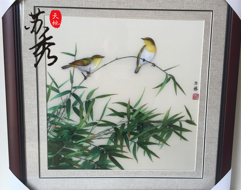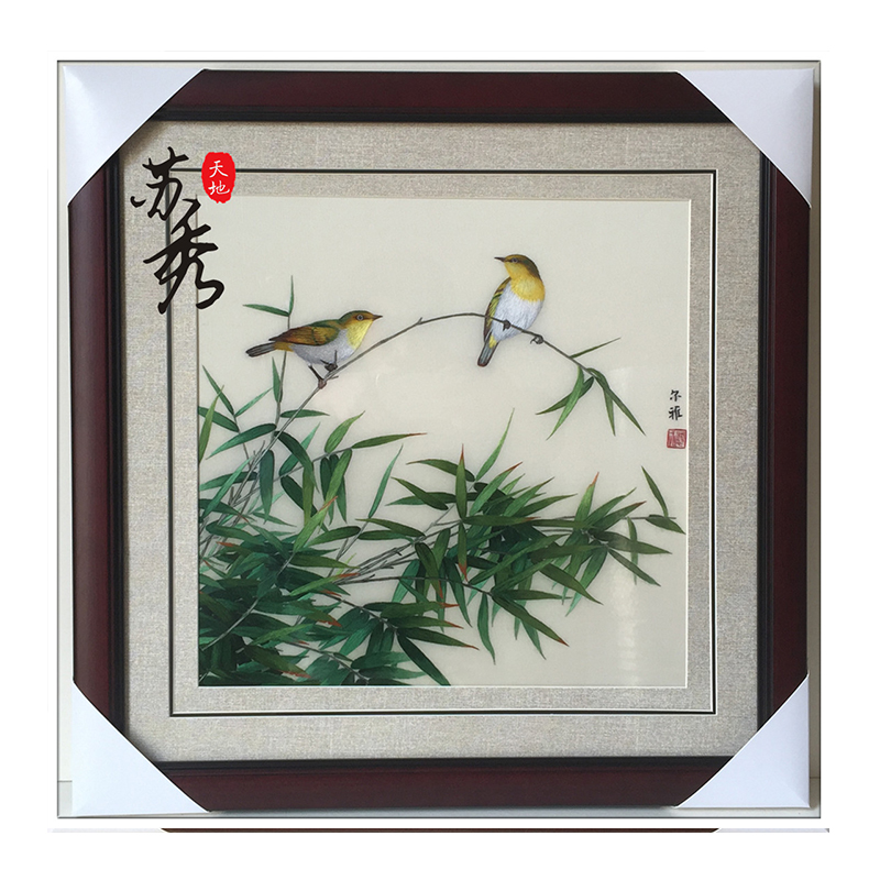 Pure hand-made verdant embroidery finished living room masonry decoration bamboo flowery and bird office study