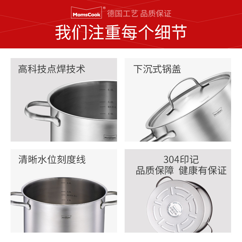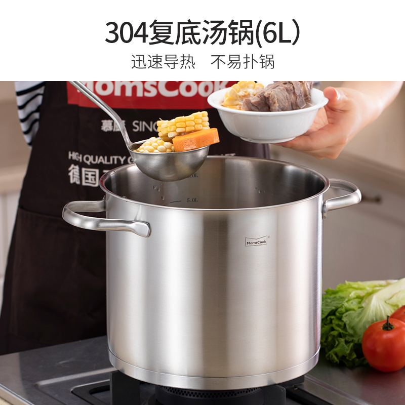 momscook stainless steel small soup pot 304 stainless steel household tall soup pot gas induction cooker universal 22cm