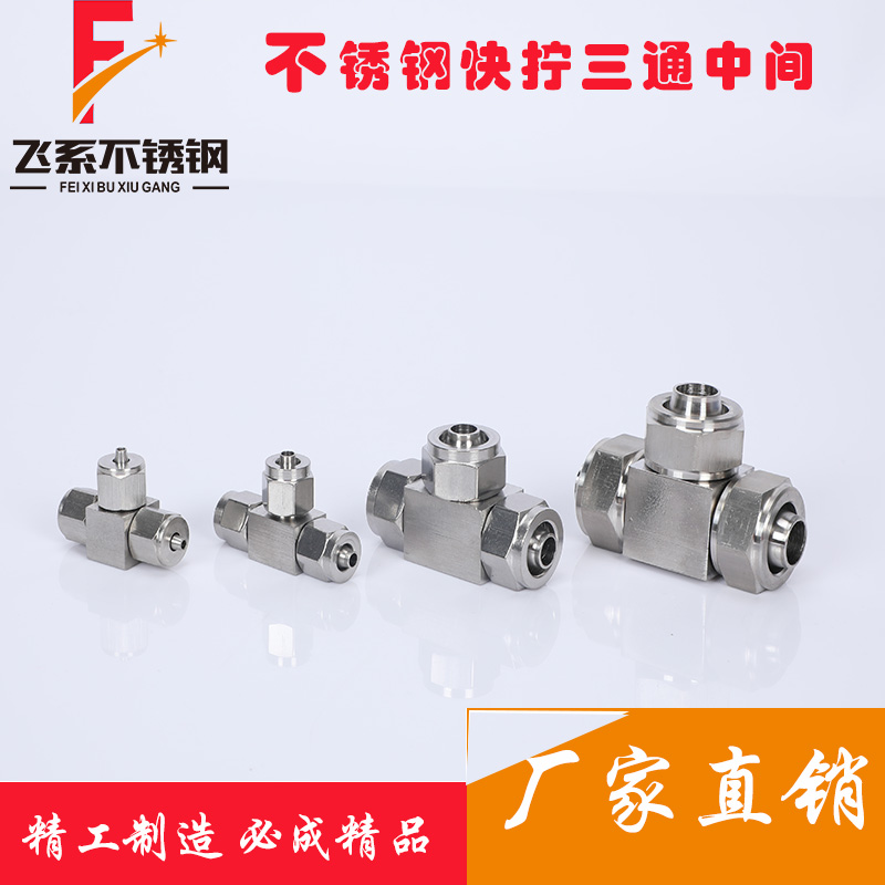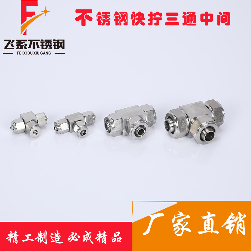 Stainless steel quick screw joint stainless steel 304 windpipe quick screw three-way connector pu Teflon pipe connector gas moving element