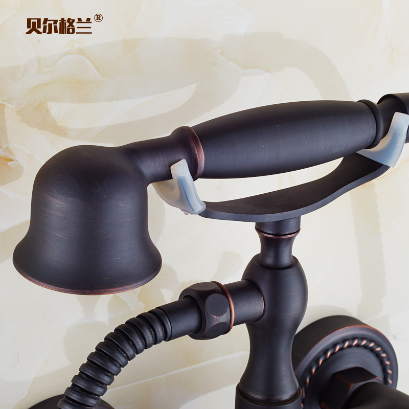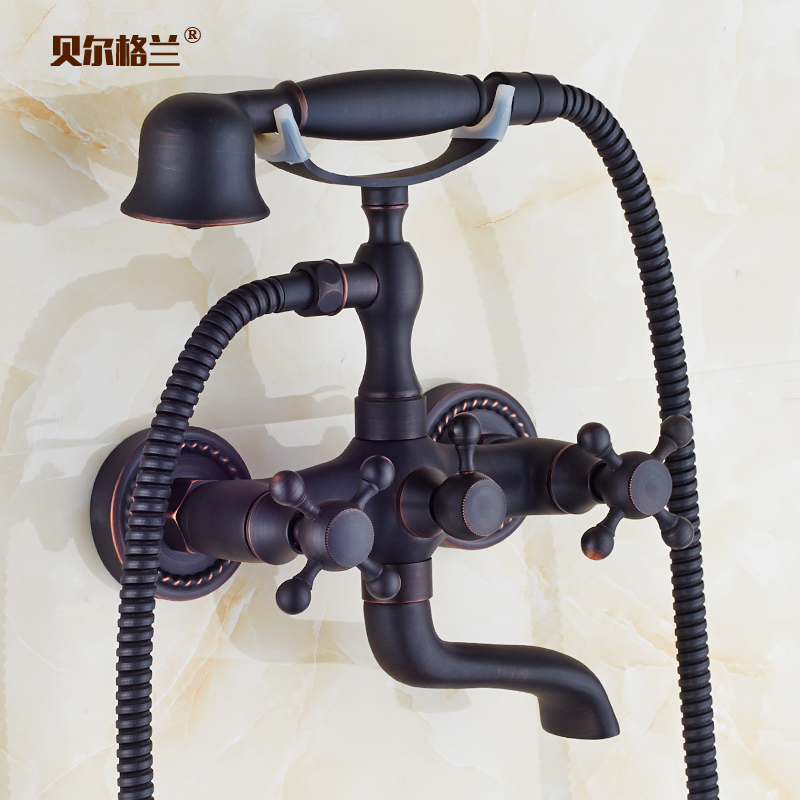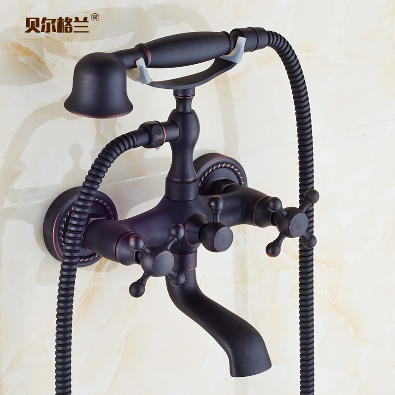 All copper black antique bathroom bathtub faucet shower faucet wall-mounted hot and cold water faucet shower surface mounted