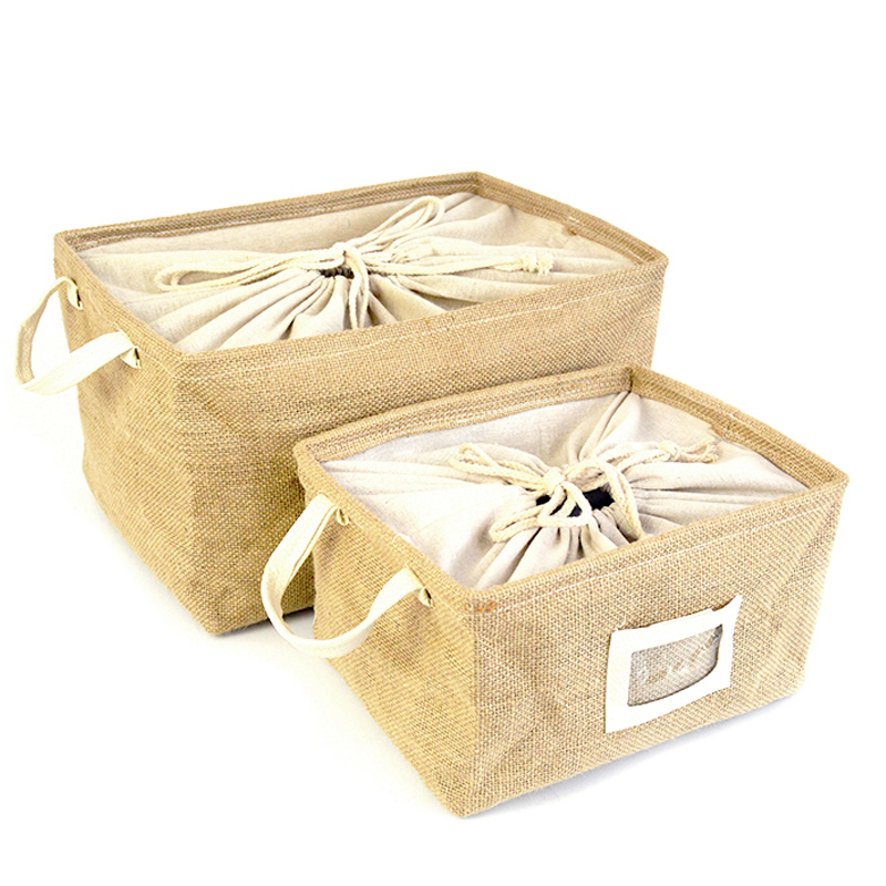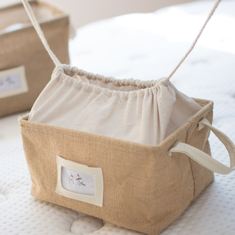 Wardrobe storage basket cotton linen fabric foldable classification large sorting box jute clothing bundle storage basket