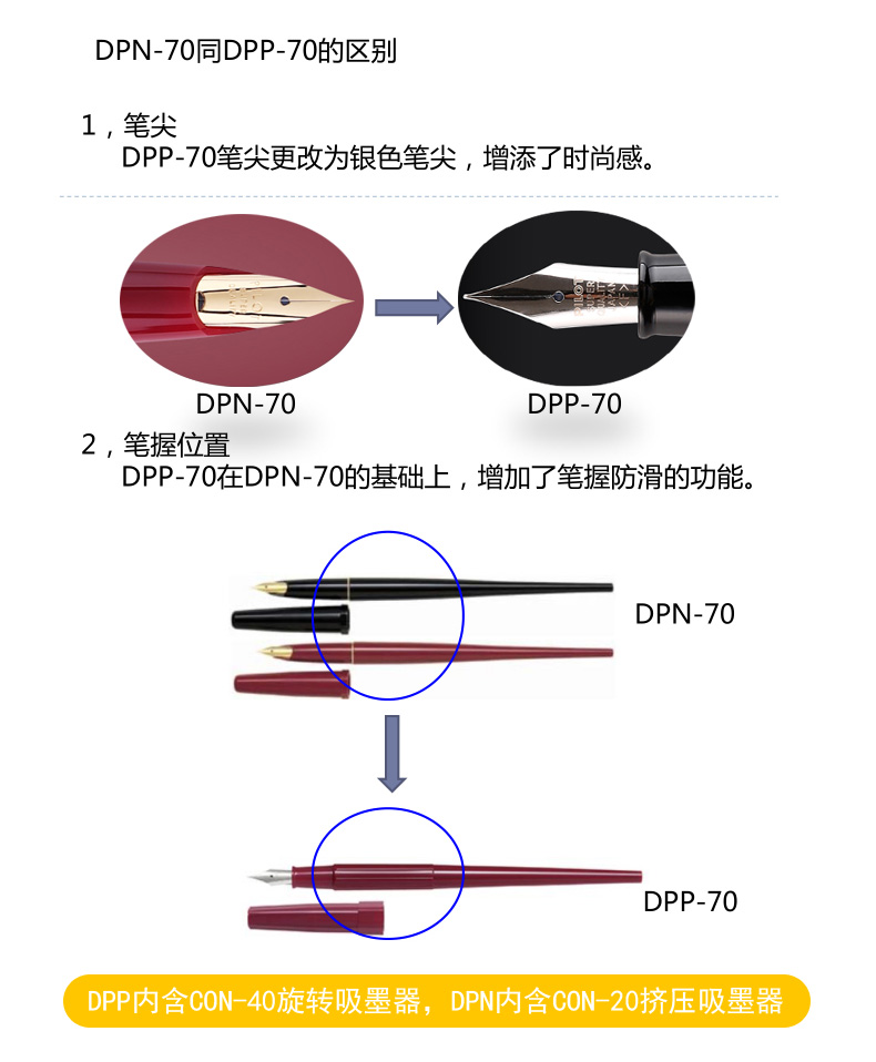 PILOT DPN-70 DPP-70 Slim and elegant long pen ink pen) Hand-drawn sketch writing fountain pen