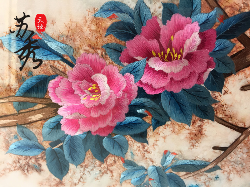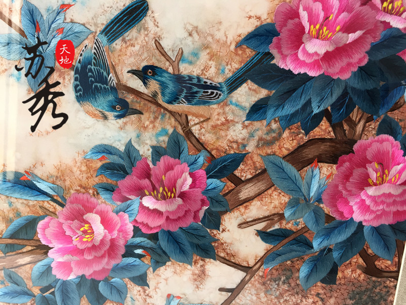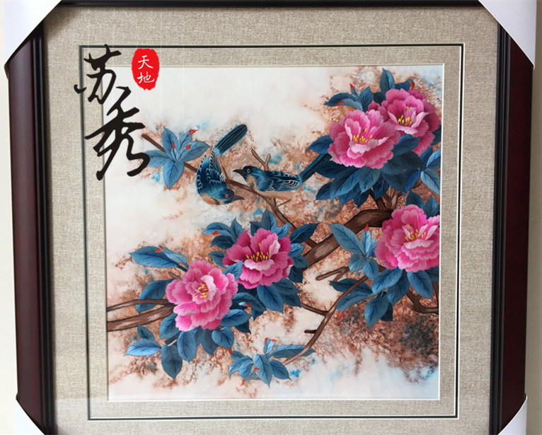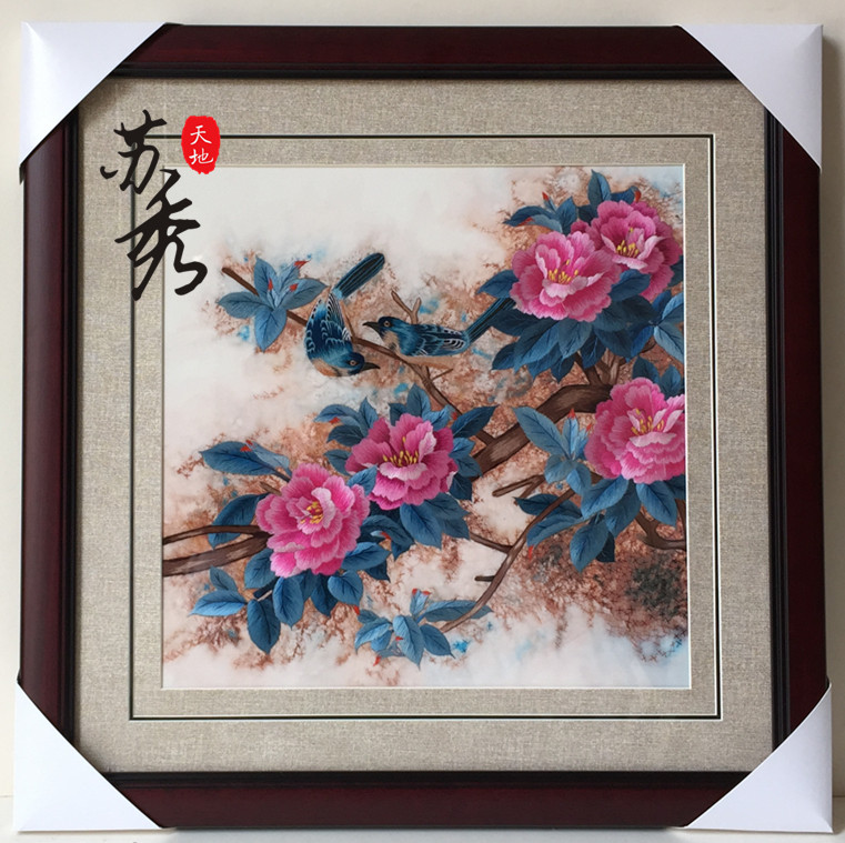 Peony Flower Handicraft Su embroidery embroidered finished product Mudan flowers bird decoration hanging painting and sending friend gift peony