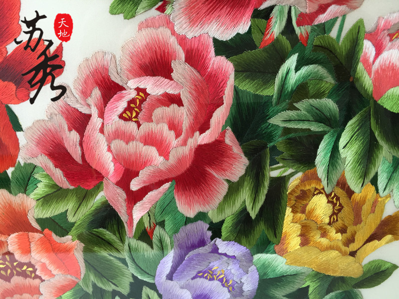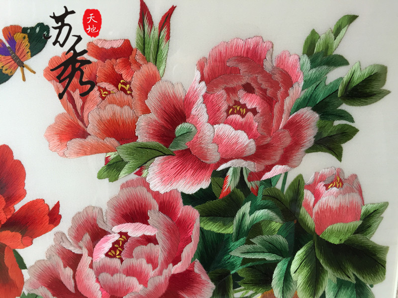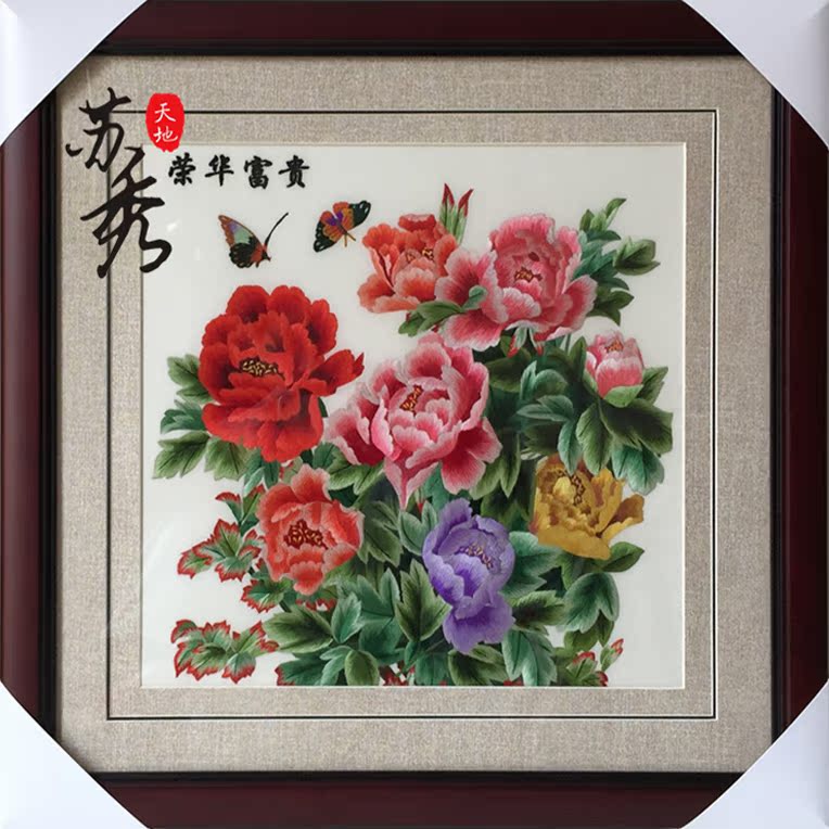 Peony handmade Rong Hua Fugui Brand Su embroidery embroidery finished product Living room Xuanguan decoration hanging painting Mudan Flower painting
