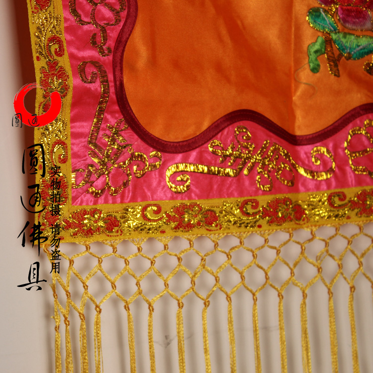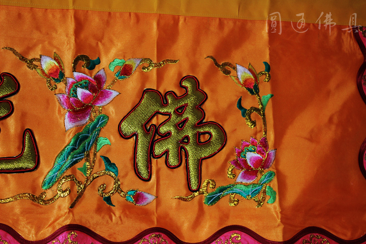 Yuantong Buddha with color eyebrow tide embroidery banner Buddha light illumination Buddhist temple embroidery hanging banner table around the color banner can be customized