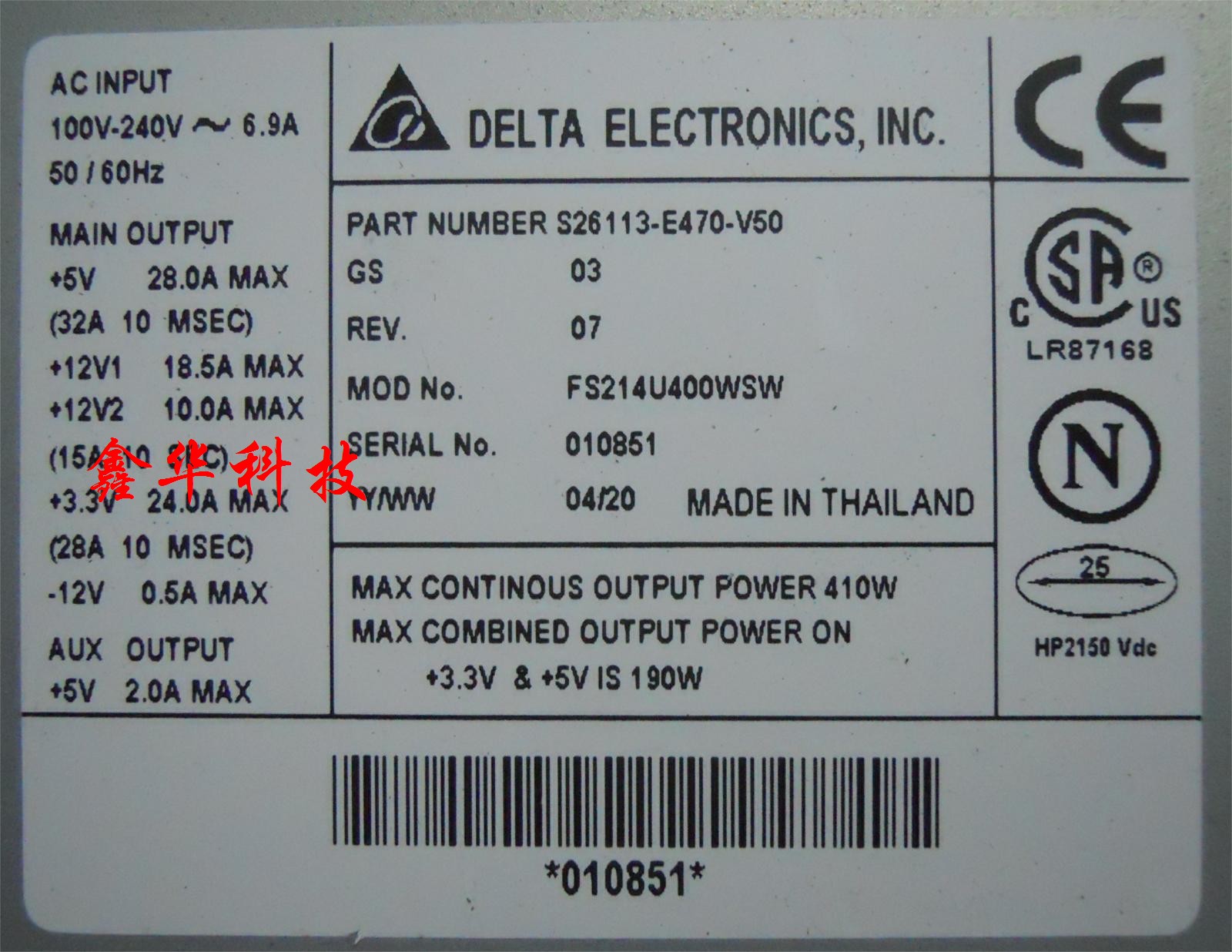 Fujitsu Siemens R610 Dedicated Power Supply S26113-E470-V50
