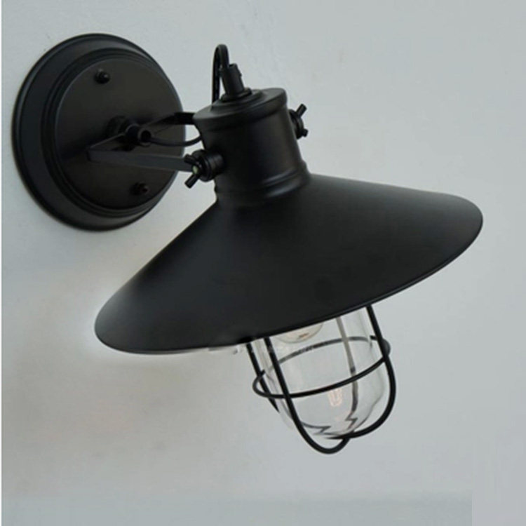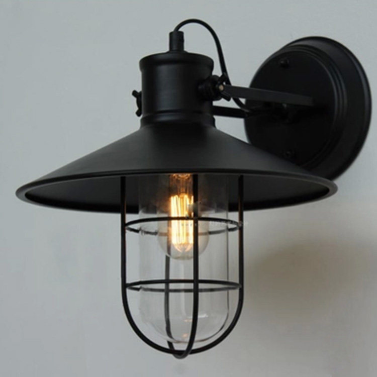 Outdoor Waterproof Waterproof Lights Personal Iron Cage with Glass Round Industrial Wind Balcony Avenue Wall Lights