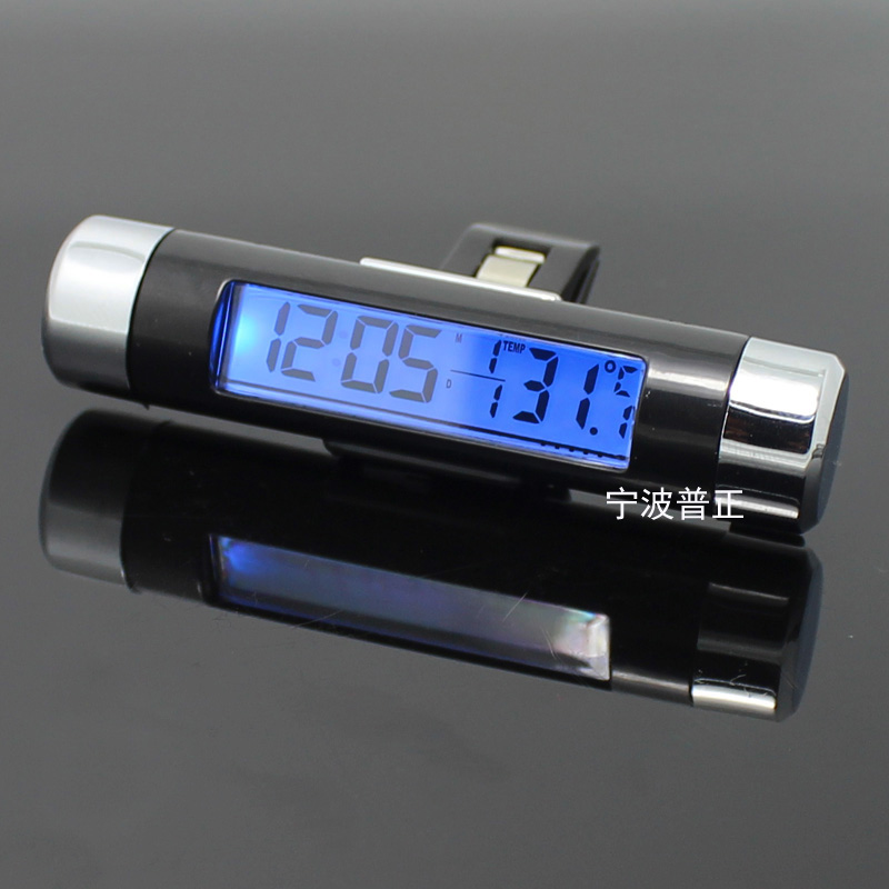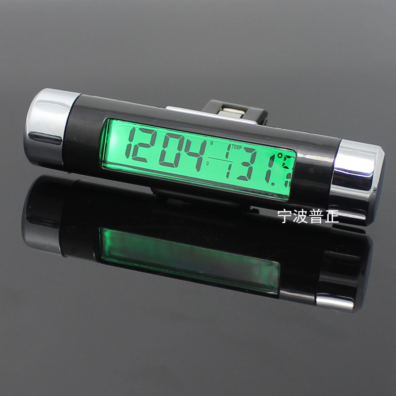 Car time, date and temperature three-in-one display air outlet clock thermometer backlight upgrade version
