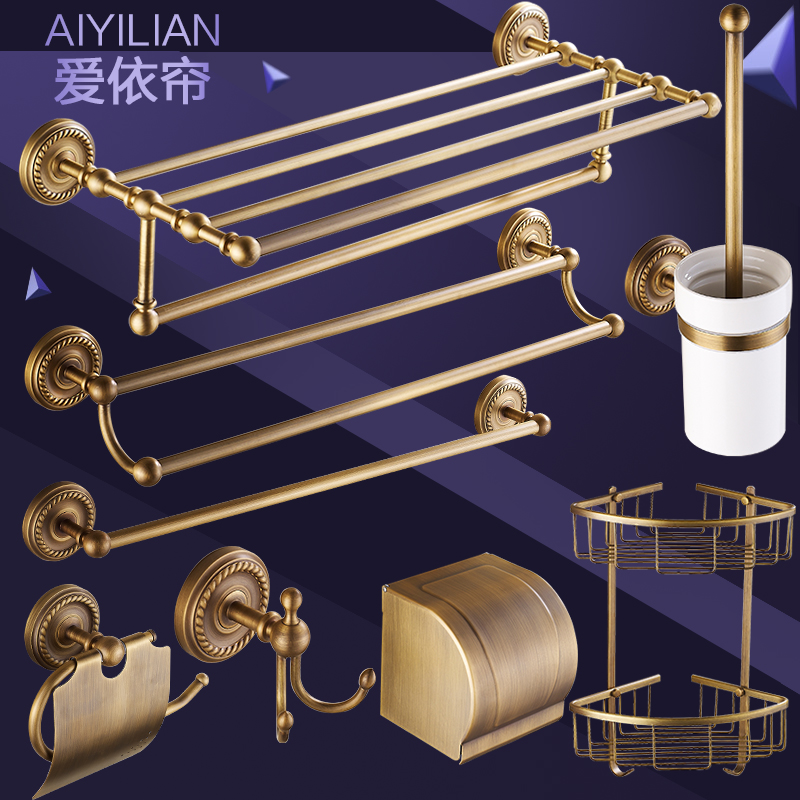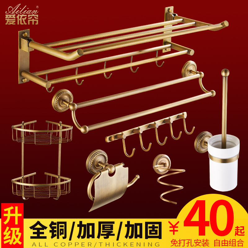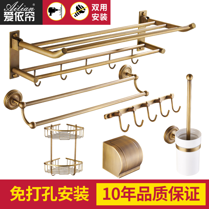 All copper antique free hole towel rack pendant set Bathroom bathroom shelf Vintage European bath towel rack set