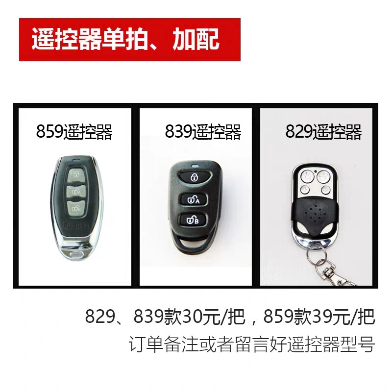 Ruiqiang remote control (black 3 keys) applicable to the new 839 (metal 4 keys) applicable to 826.829.839D Ruiqiang remote control (3 keys) applicable to the new 859 Ruiqiang remote control (metal 3 keys) After receiving the remote control, give the operation configuration video original Ruiqiang remote control
