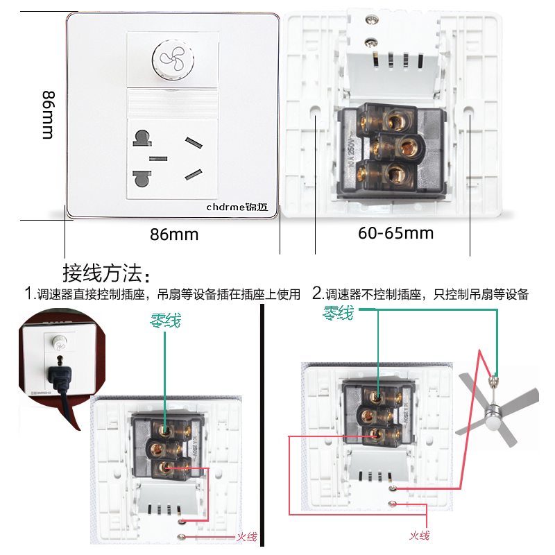 Jinmai fan governor with socket two or three hole ceiling fan speed control switch Power supply five holes + fan switch 220V