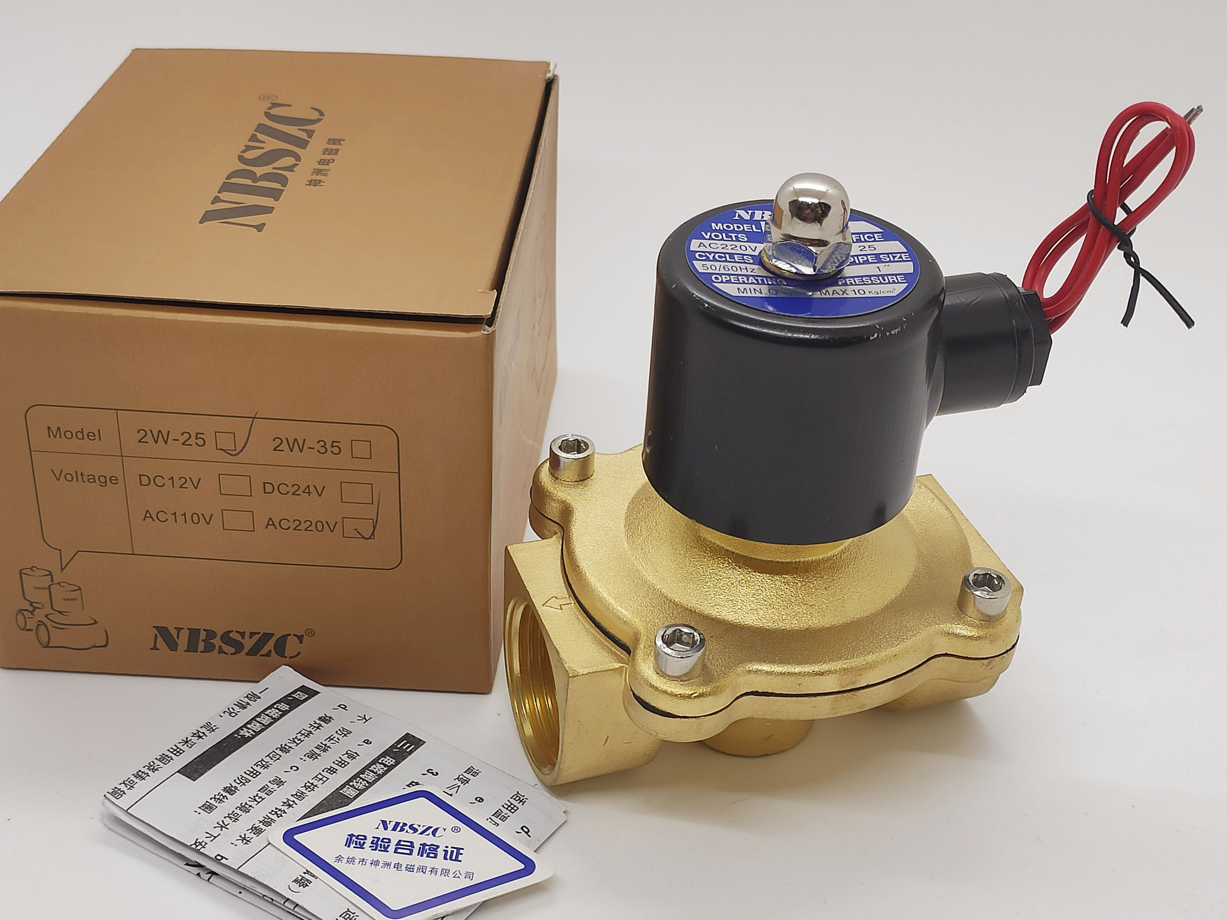 NBSZC Shenzhou 2W-25 normally closed solenoid valve 2W250-25 solenoid air valve water valve two-position two-way 1 inch