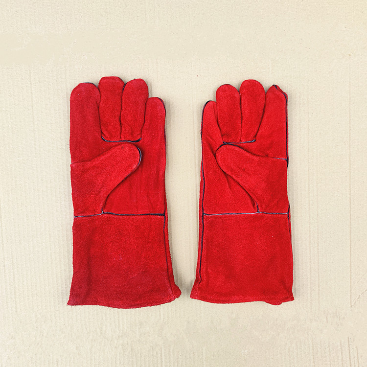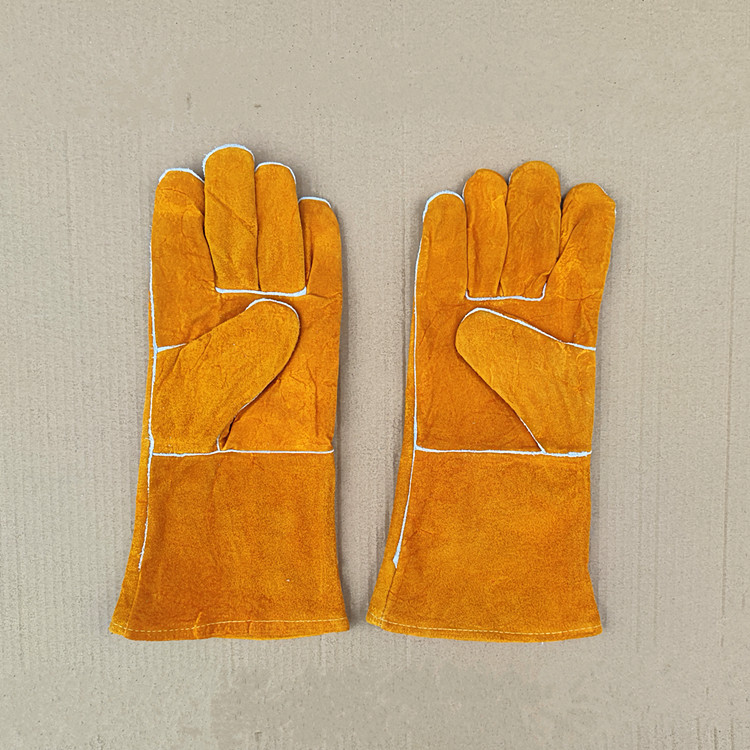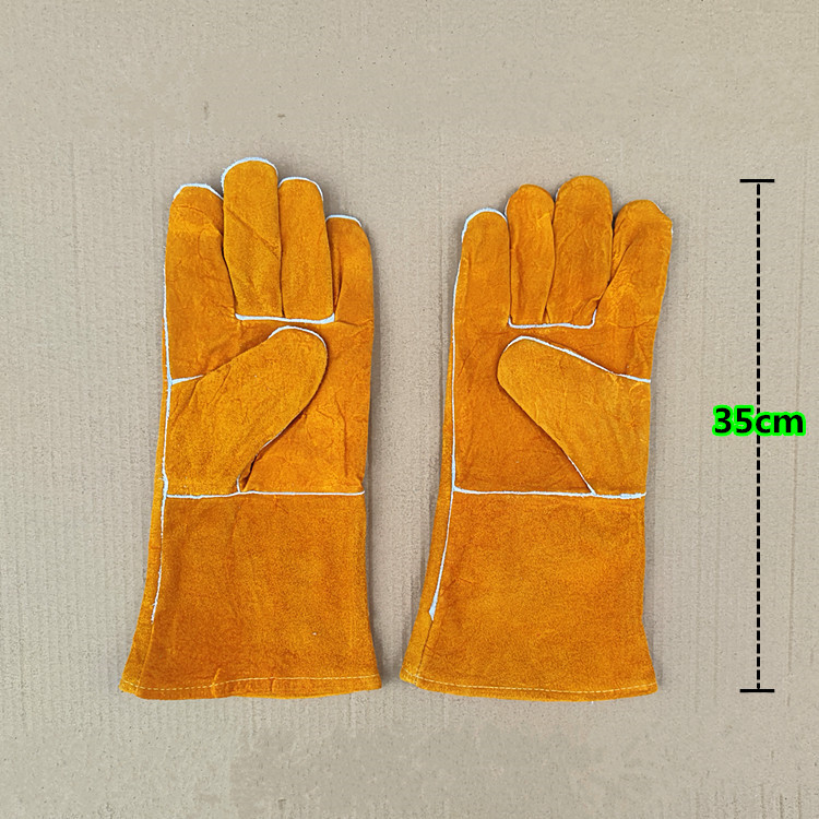 Strengthening thickening coat welding gloves Second layer of cow leather welder gloves protective labor insurance high temperature gloves