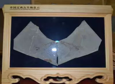 Fine Liaoning Chaoyang paleontological fish fossil high-end gift box mounted ornaments double plate specimens solid wood table