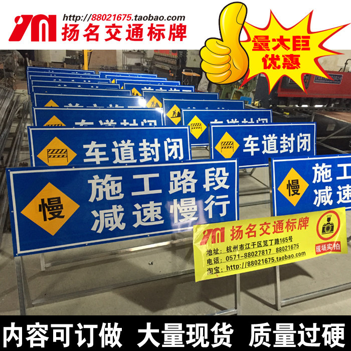 Road construction warning signs sign traffic road safety reflective film logo H shaped mobile bracket forward construction-Taobao