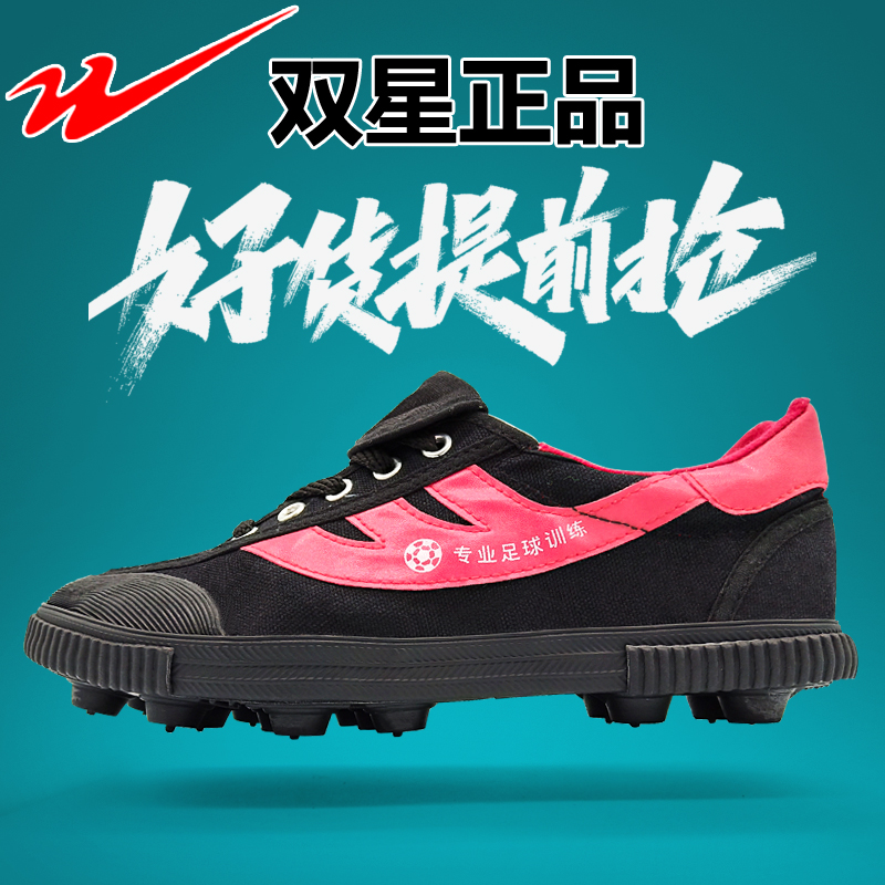 Soccer shoes men's double star low-top children's soccer training shoes women's canvas rubber spikes running shoes student shoes
