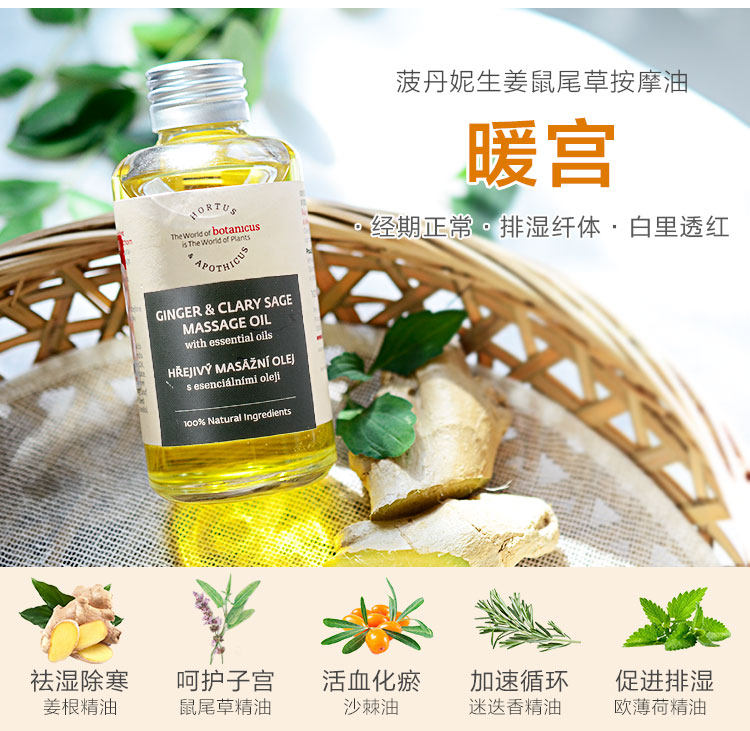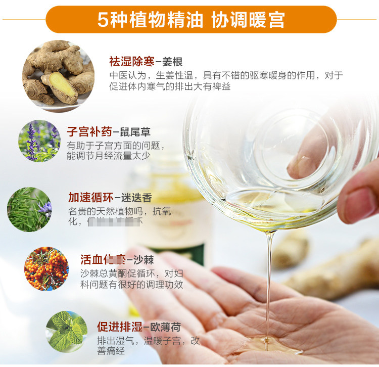 Ou Ti Shi Bo Danni saves Gong Han, raises the uterus and ovaries, dredges the middle coke, warms the palace, ginger and sage essential oil
