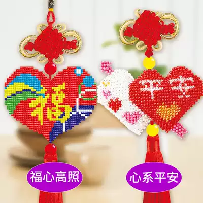 2021 New Car pendant cross stitch love Pingan Fu car hanging full of beaded embroidery full bead embroidery small piece embroidery