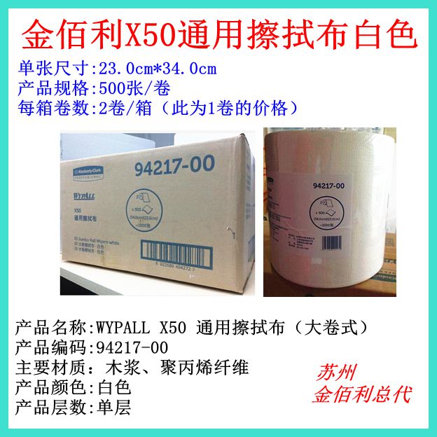 Kimberly 94217WYPALLX50 Universal Wipe Cloth White Big Roll Type No Dust Cloth Industrial Suction Oil Cloth Per Roll