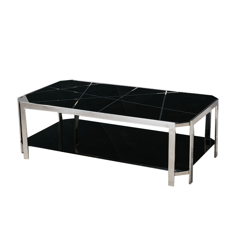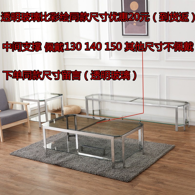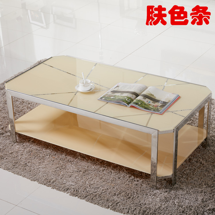 Modern minimalist European paint fashion office stainless steel tempered glass coffee table living room rectangular square coffee table