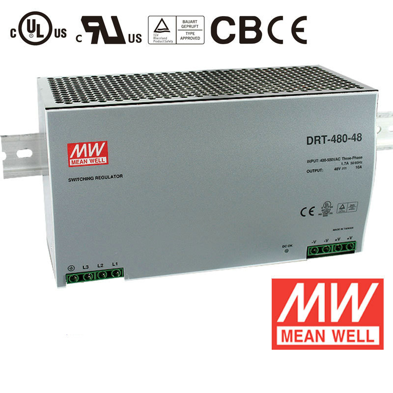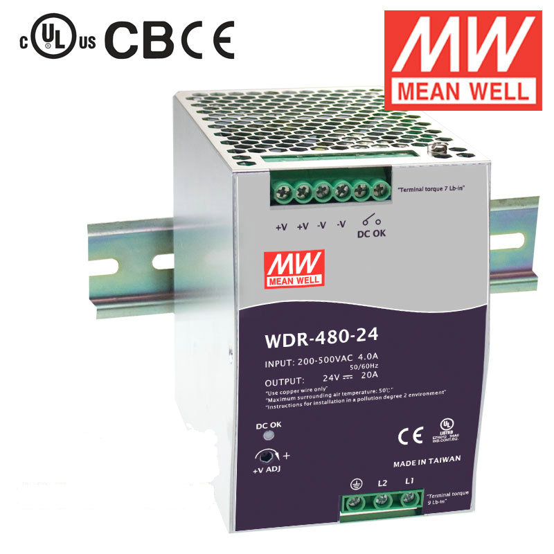 Taiwan Mingwei 380V input rail type regulated power supply WDR-480-24 480W 24V20A DRT-48
