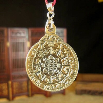 Pure copper XII Zodiac 9 Palace gossip Bronze Buddha Beads Pendant card DIY accessories Waist Card Pendant Bag Hung
