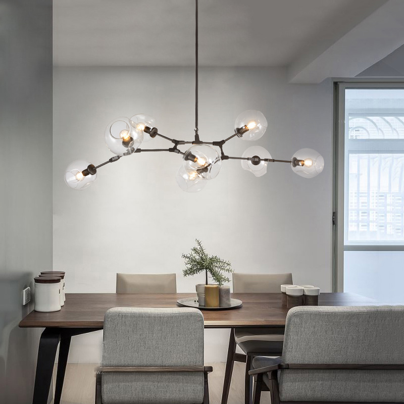 Simply modern classic molecular structure die-casting aluminum LED glass template room Changshang chandelier
