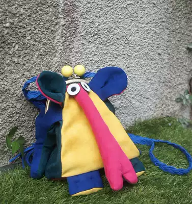 Steam elf "Big mouth Gold series elephant" original personality creative cute wide shoulder crossbody color small bag