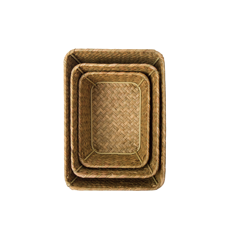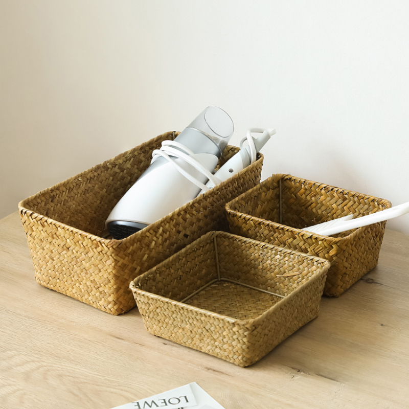 Moisture-proof natural seagrass hand-woven (long three-piece set) long large long medium long small short large short medium square small portable storage box (short large) portable storage box (