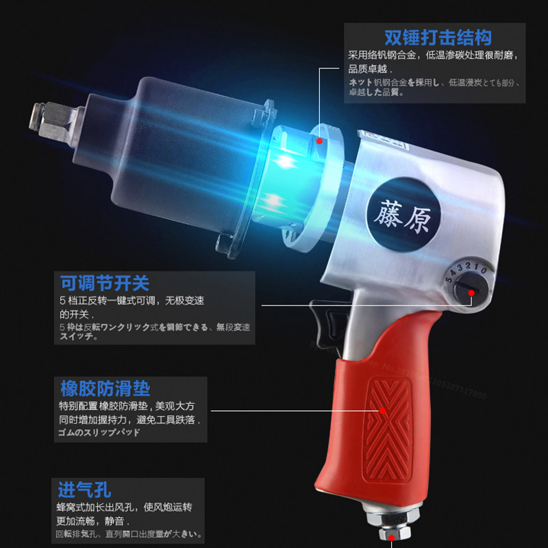 Fujiwara Pneumatic Wrench Powerful Small Wind Cannon Large Torque Force Tool Tire Removal Torque Wrench 1 2 inches