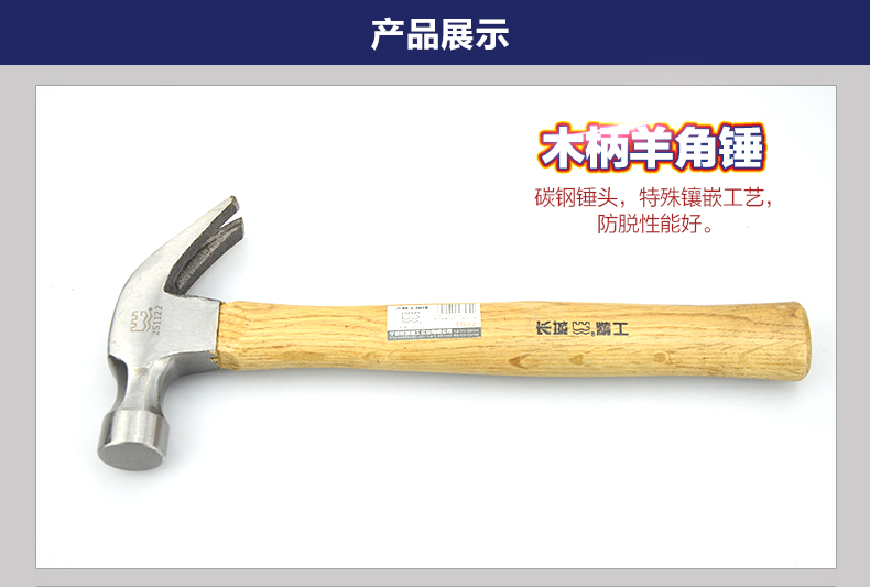 Great Wall Seiko claw hammer Wooden handle Pull solid wood hammer Woodworking hammer Nail nail tool Splint handle hammer hammer hammer
