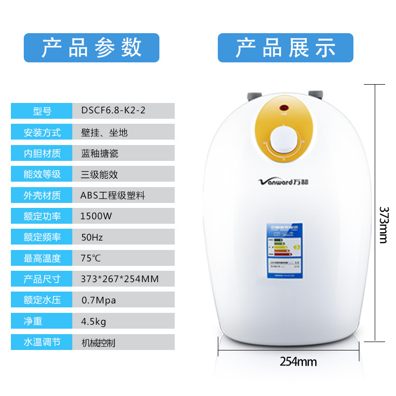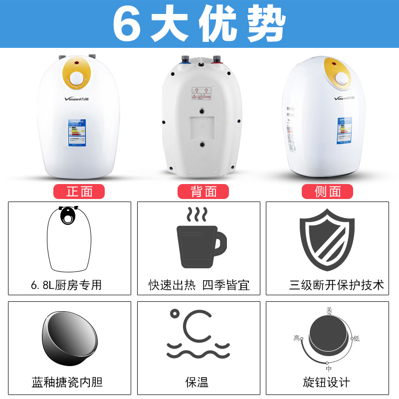 Wanhe up-water instant heat kitchen treasure small electric water heater 6 8 liters L kitchen household water storage type quick heat