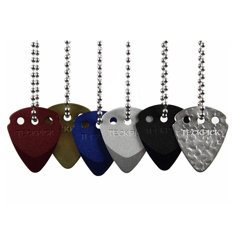 Textured silver pick with necklace Glossy gold pick with necklace Matte silver pick with necklace Matte blue pick with necklace Matte black pick with necklace Matte red pick with necklace Textured silver single pick