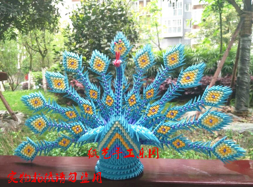 Blue peacock material packs (4 * 6CM pieces of paper) green peacock material packs (4 * 6CM pieces of paper) red peacock material packs (4 * 6CM pieces of paper) blue peacock semi-finished products (pleated three