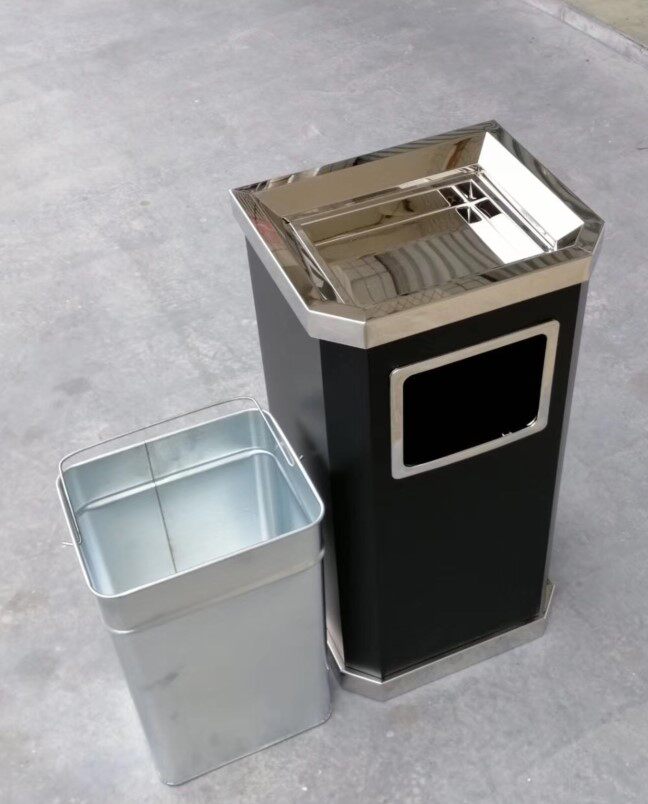 Hotel trash can lobby with ashtray peel bucket oblique black strip hotel ground ash bucket stainless steel