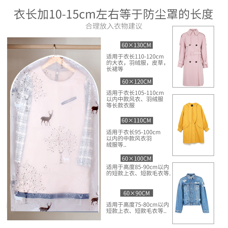 Magnetic closure dust cover Clothes dust cover Transparent clothing dust bag Coat cover Clothing cover hanging storage bag