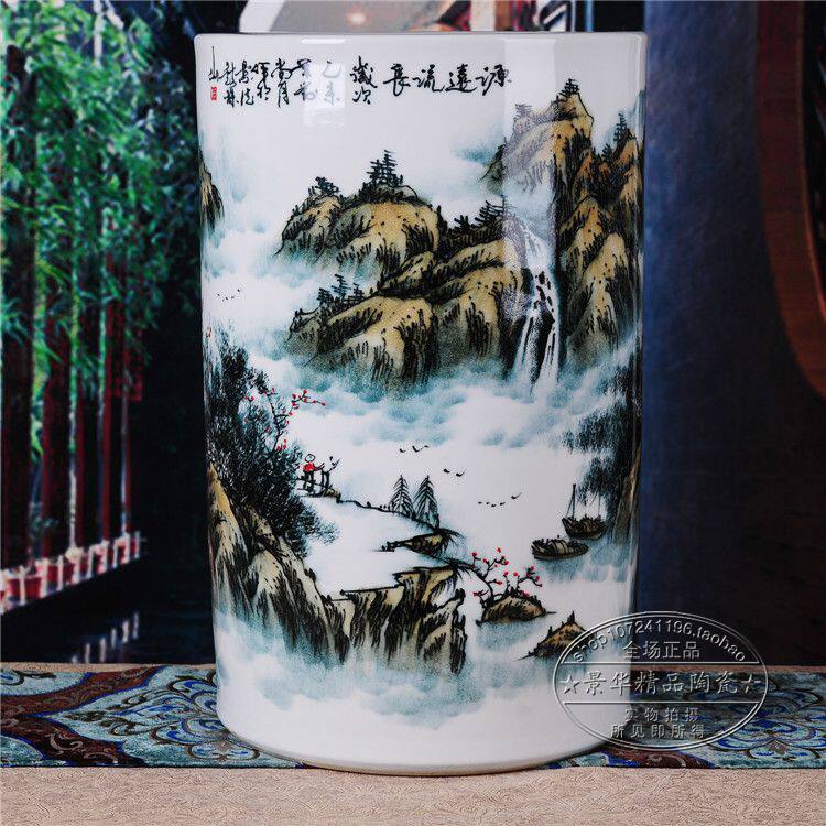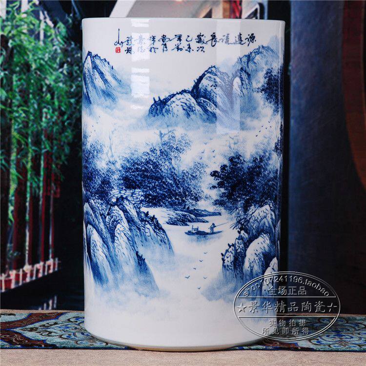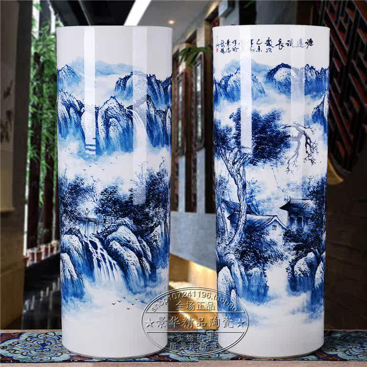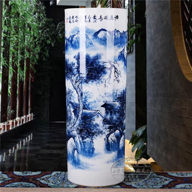 Jingdezhen ceramics hand-painted floor vase living room landscape ornaments 1 meter quiver porcelain vase calligraphy and painting tube