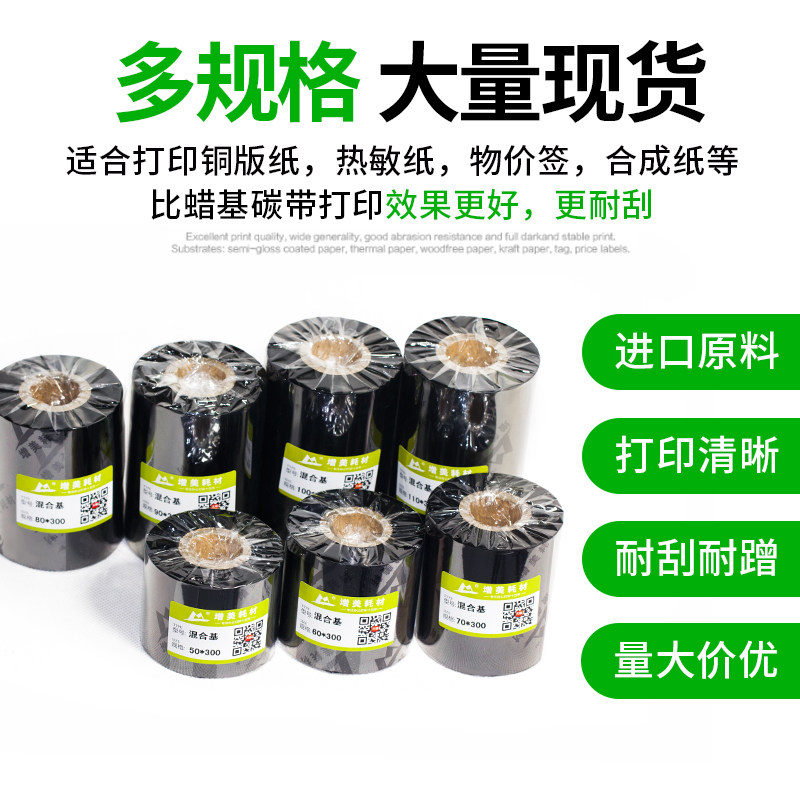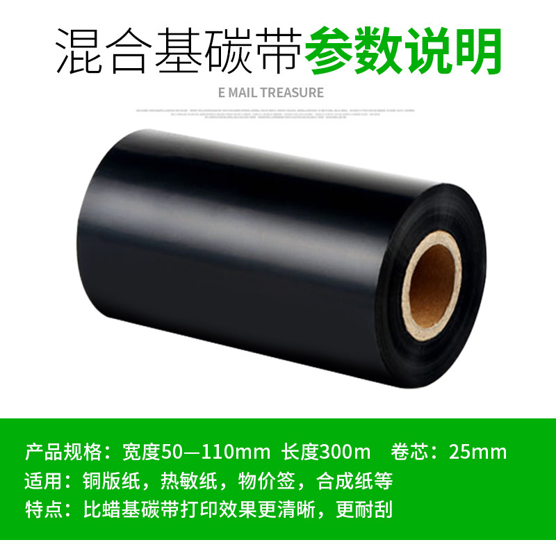 Mixed base carbon with half-tree semi-wax code machine ribbon 40 ~ ~ 110mm 300m Bar code printing press printing carbon ribbon
