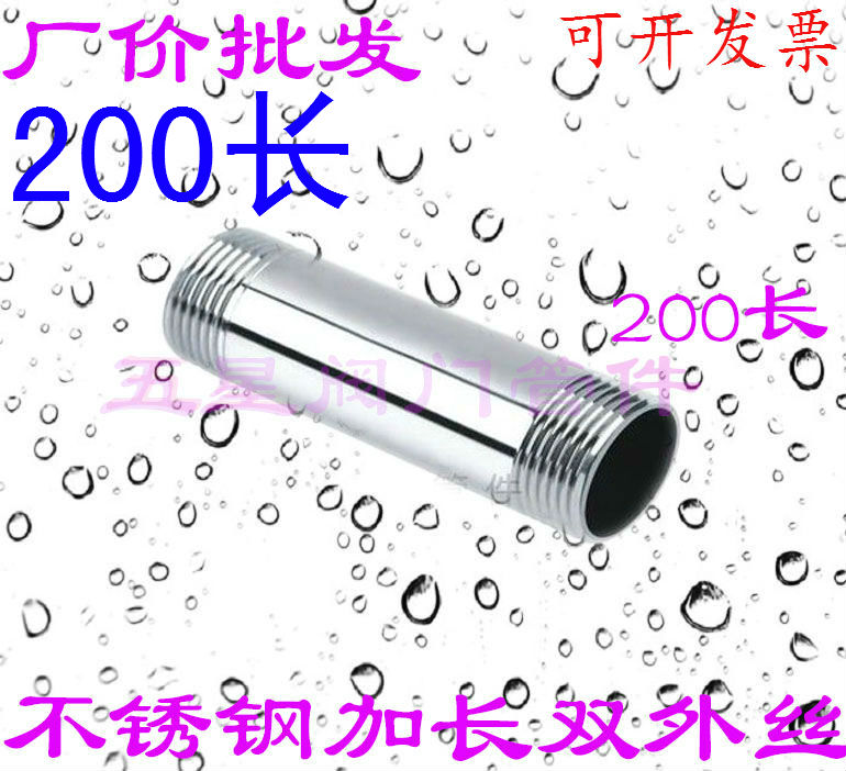 Stainless steel 304 lengthening 200mm single-head double-head wire outer tooth pipe 201 water pipe 4 minutes 6 minutes 1 inch DN15