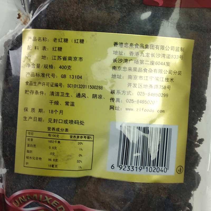 Zhonglai old brown sugar Ginger sugarcane garden red sugar powder Catering bag Guangxi cotton sugar bulk sales 400g