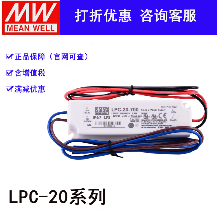 Taiwan Mingwei LED constant current power supply LPC-35-1050 9 ~ 30V1050mA Lighting LPC-20-700