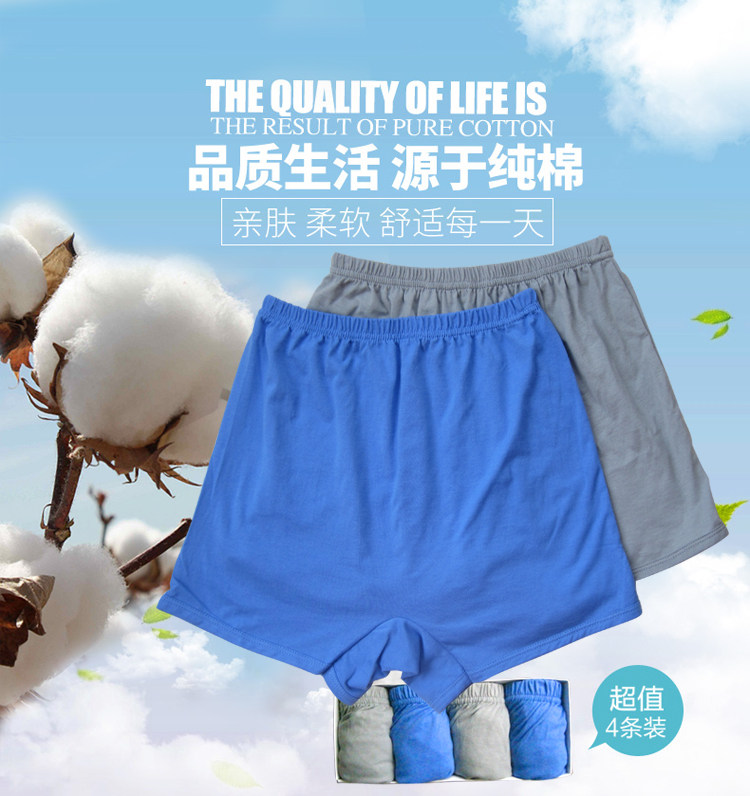 Middle Aged Aged Four Corner Pants Male elderly Underpants High waist full cotton grey Blue large trouser head plus Mast Shorts Pure Cotton