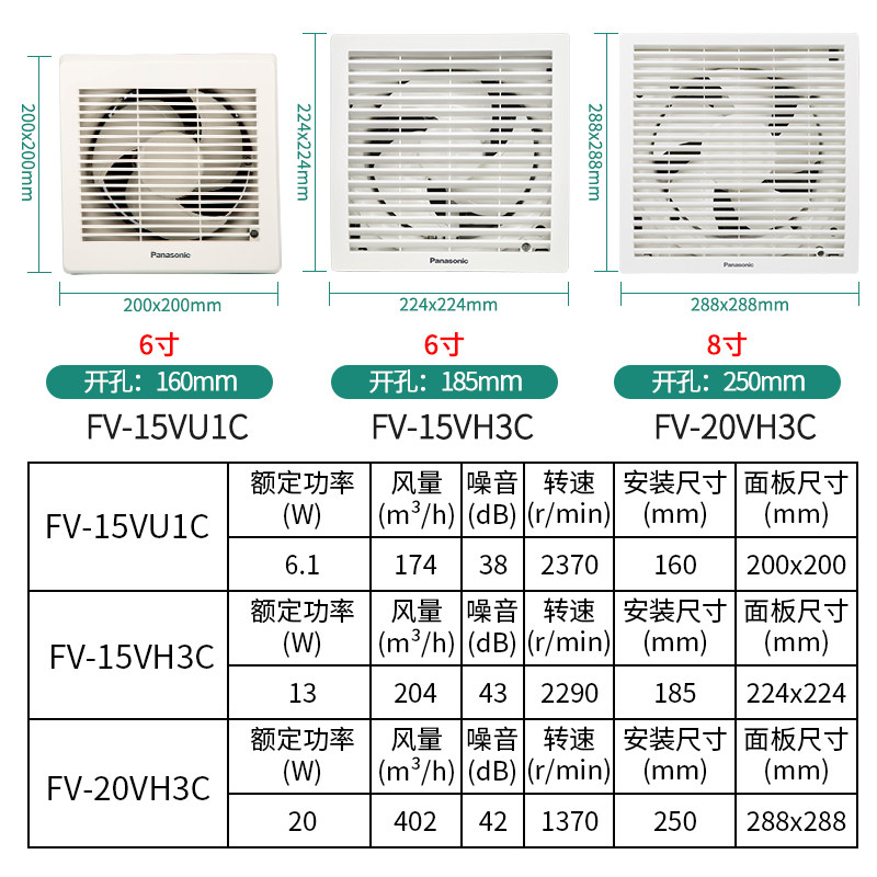 Panasonic exhaust fan 6 inch Makeup Room Round Glass Window Style Ventilation 8 Kitchen Oil Smoke Mute exhaust fan