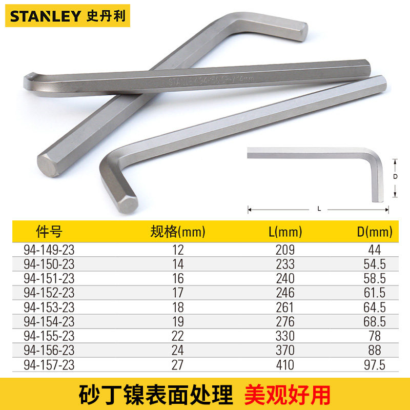Stanley Inner Hexagon Wrench Lengthened Hexagon Wrench Big 12 12 14 16 17 18 19 19 24 24 27mm-Taobao