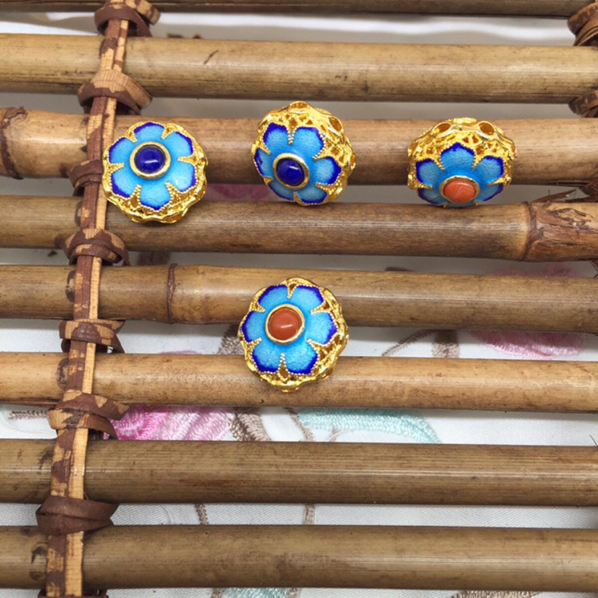 Fancy inlaid bead tee multi-functional matching 925 silver plated pure gold cloisonne burning blue DIY accessories