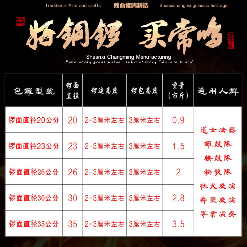About 35CM in diameter (1 foot) bag Gong diameter about 23CM(7 inches) bag Gong diameter about 26CM(8 inches) bag Gong diameter about 20CM(6 inches) bag Gong diameter about 30CM (